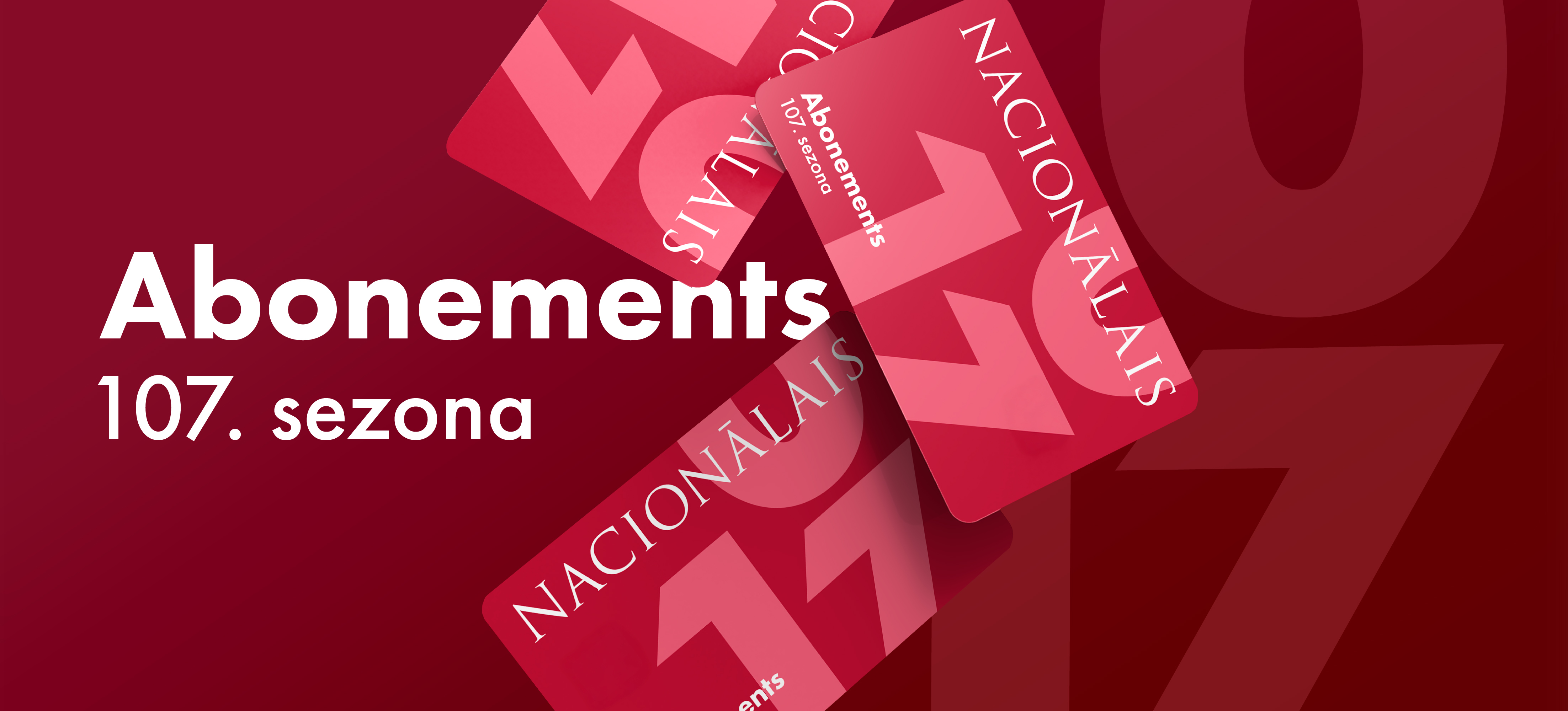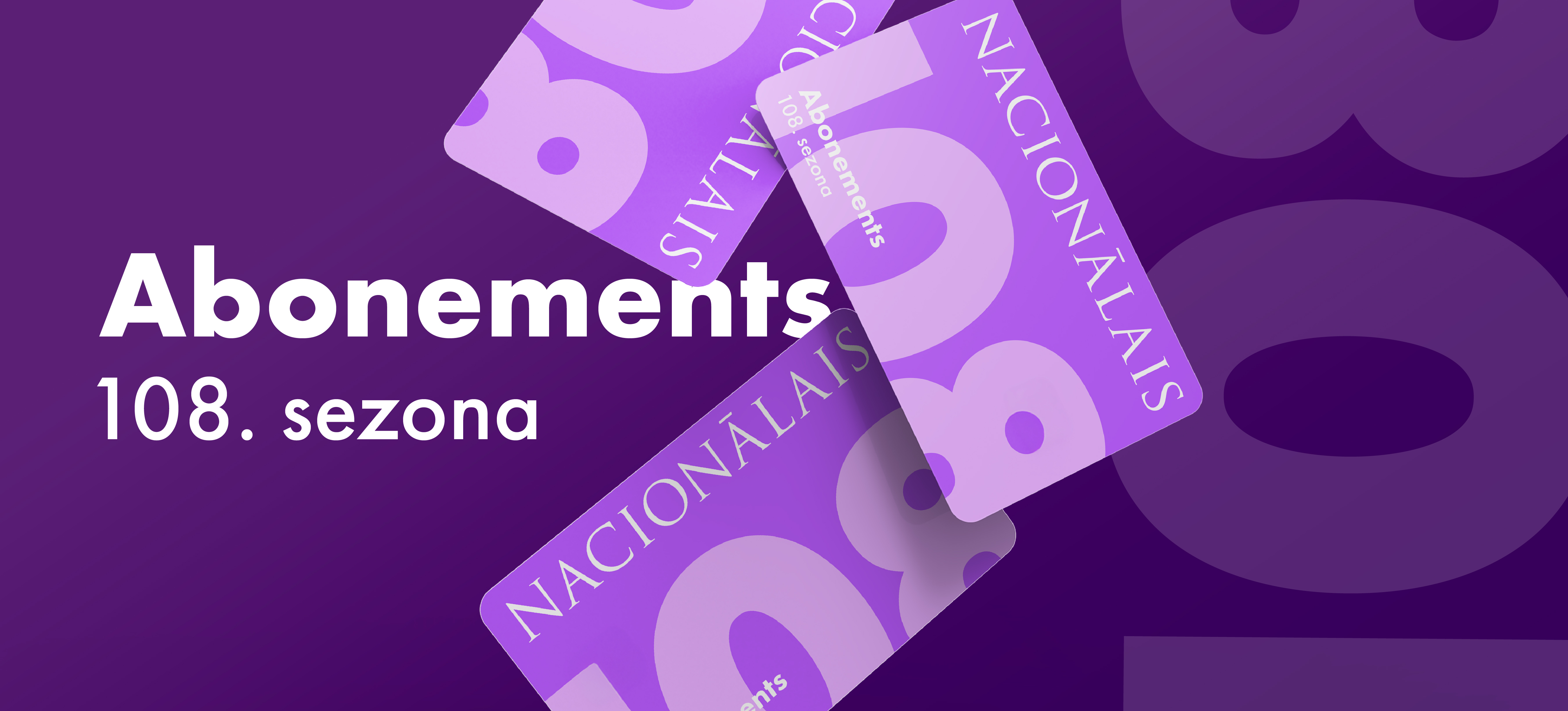 Latvijas Nacionālais teātris 108. sezonas abonementā piedāvā 4 Lielās zāles jauniestudējumus un 7 abonementus – Pirmizrāžu karti, Zelta, 1., 2., 3., 4., un 5. abonementu. Vietas pieejamas gan parterā, gan pirmajā balkonā. Pirmais abonementa jauniestudējums Pirmizrāžu kartei, Zelta, 1., 2., 3. abonementam gaidāms jau 2026. gada pavasarī – vēl šīs sezonas noslēgumā. 4., 5. abonementam – rudenī.