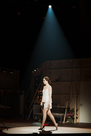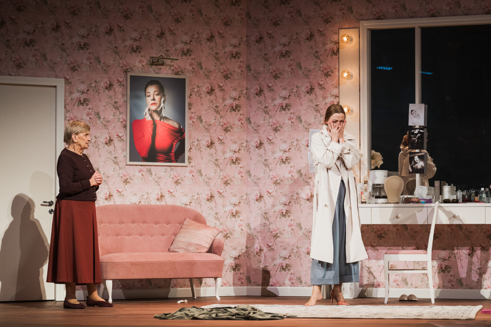 Izrāde par laiku, kas rit un liek mainīties tev pašam, lai turpinātu dzīvot un strādāt, un kāpt pa karjeras kāpnēm, un ne tikai sasniegt virsotnes, bet arī iespēju baudīt dzīvi. Ja tu nespēj mainīties, tevi ieskaita aizejošā paaudzē, jo pie durvīm vienmēr stāv nākamie. Šoreiz – pie kāda Brodvejas teātra ieejas vēlā rudens vakarā noplukušā mētelītī tērptās Īvas Heringtones izskatā.